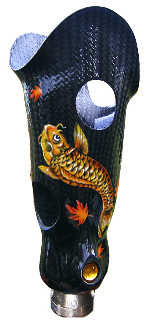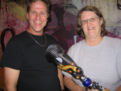 In very short time I took delivery of my new leg. It is so much nicer than I could have even imagined. I feel great pride in the fact that I carry my son’s artwork with me. It attracts a lot of attention; and I love to let kids see and touch my “robot leg.” I think this leg takes me from the “disabled” list to the “differently-abled” list. I look at this leg each morning and it makes me smile.