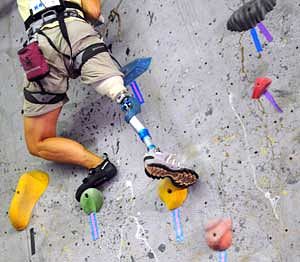 The goal was to find which condition works best, said Jason Highsmith, a visiting assistant professor at USF’s School of Physical Therapy & Rehabilitative Sciences. “We don’t know if one is easier. We know the stubby seems to be preferred by a lot of people. But a lot of people climb with no prosthesis,” Highsmith said. The value of the research extends beyond helping amputee athletes perform well, he said. Rock climbing is one of the therapies used to help wounded war veterans from Iraq and Afghanistan to resume active lives, Highsmith said. “The three major military hospitals have all invested in climbing walls,” he said. “They’re looking for lifetime fitness pursuits (to offer to injured veterans). This is something you can do as a lifetime pursuit.”