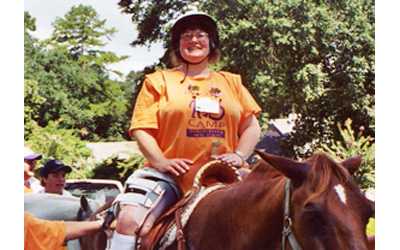 "I've been a Buddy Parent the past few years, and my girl scouts have been counselors. The girls are great," she says proudly. "When we go on a trip, they push me in the wheelchair, carry all the stuff, and take care of my backpack and luggage. They're a wonderful group."