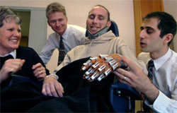 This invention won Tim Scott and Veronica Ware the $10,000 British Council Eureka Prize for Inspiring Science. Peter Abolfathi, a PhD student at the Royal North Shore Hospital’s Quadriplegic Hand Research Unit, created this prototype and has given Mr. Roffey and other quadriplegic individuals a glimpse of the possible future of rehabilitation medicine.